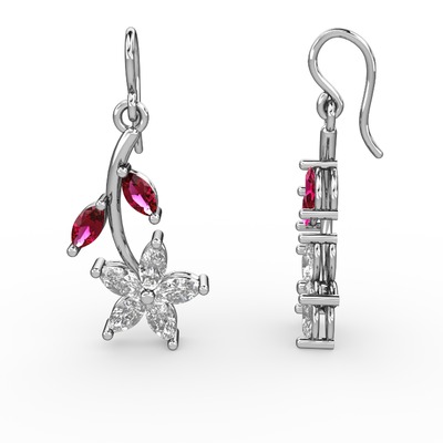 Beyaz zirkon ve rodolit garnet 925 ayar gümüş küpe