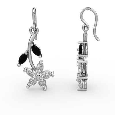 Beyaz zirkon ve siyah zirkon 8 ayar beyaz altın küpe