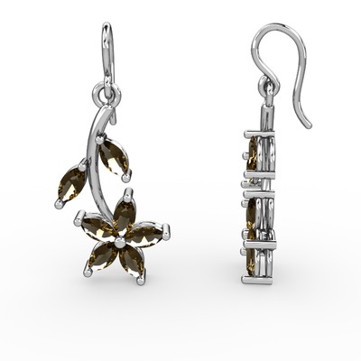 Dumanlı kuvars 18 ayar beyaz altın küpe