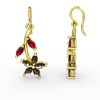 Dumanlı kuvars ve garnet 8 ayar altın küpe