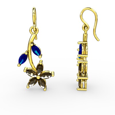Dumanlı kuvars ve lab safir 925 ayar altın kaplama gümüş küpe