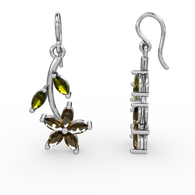Dumanlı kuvars ve peridot 14 ayar beyaz altın küpe