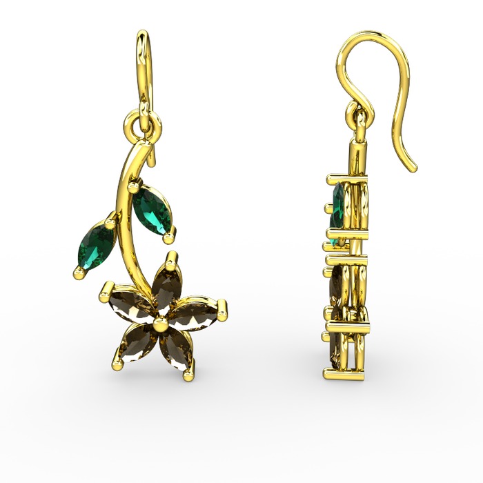 Dumanlı kuvars ve yeşil kuvars 18 ayar altın küpe