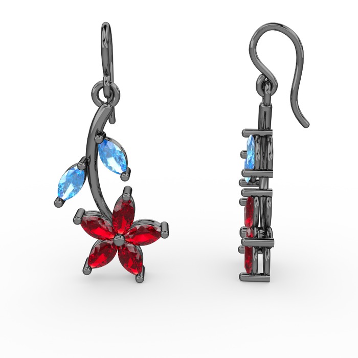 Garnet ve akuamarin 925 ayar siyah rodyum kaplama gümüş küpe