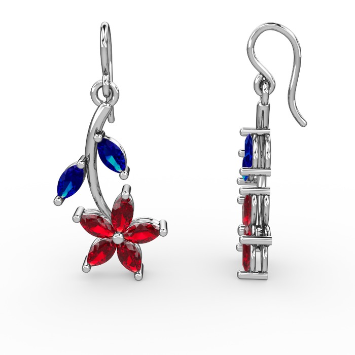 Garnet ve lab safir 14 ayar beyaz altın küpe