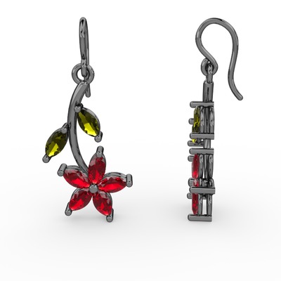 Garnet ve peridot 925 ayar siyah rodyum kaplama gümüş küpe