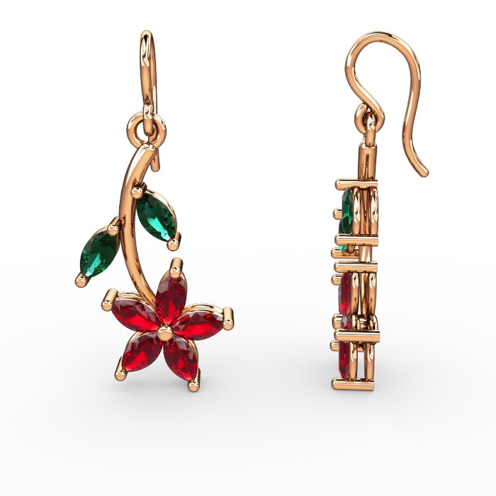 Garnet ve yeşil kuvars 925 ayar rose altın kaplama gümüş küpe