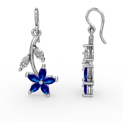 Lab safir ve beyaz zirkon 8 ayar beyaz altın küpe