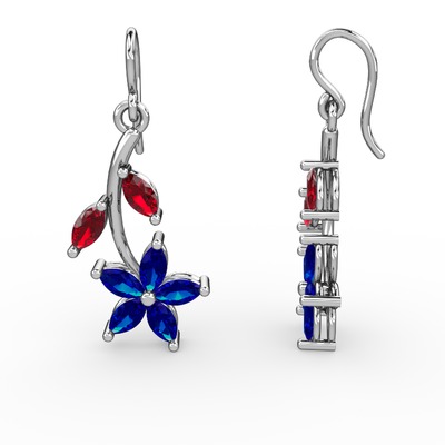 Lab safir ve garnet 18 ayar beyaz altın küpe