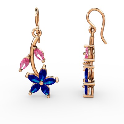 Lab safir ve pembe kuvars 8 ayar rose altın küpe