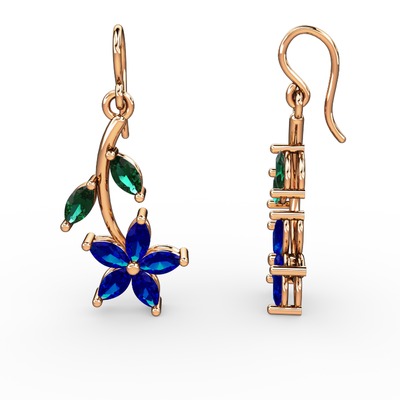 Lab safir ve yeşil kuvars 18 ayar rose altın küpe