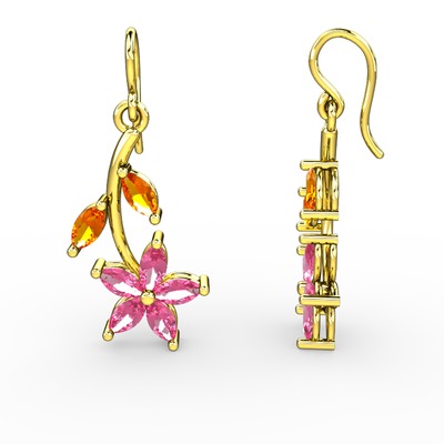 Pembe kuvars ve sitrin 925 ayar altın kaplama gümüş küpe