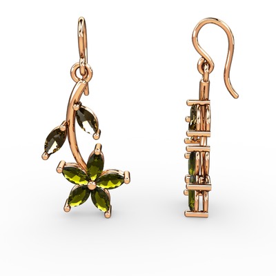 Peridot ve dumanlı kuvars 18 ayar rose altın küpe