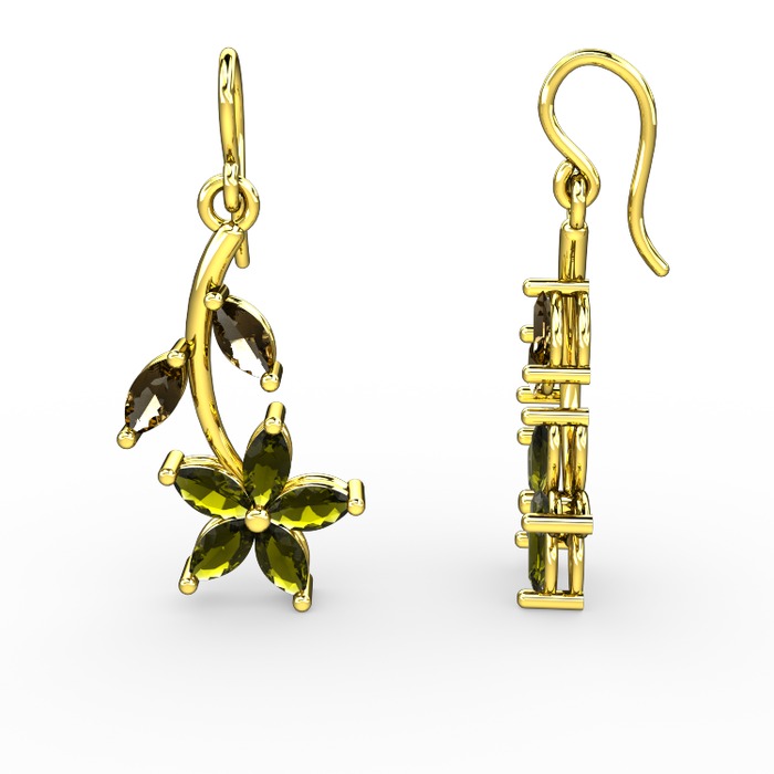 Peridot ve dumanlı kuvars 925 ayar altın kaplama gümüş küpe