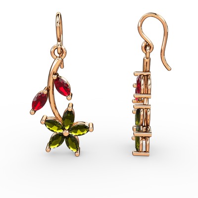 Peridot ve garnet 925 ayar rose altın kaplama gümüş küpe
