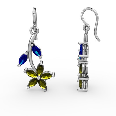 Peridot ve lab safir 14 ayar beyaz altın küpe
