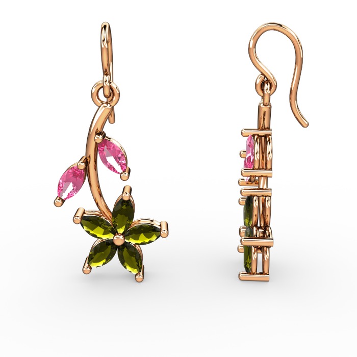 Peridot ve pembe kuvars 18 ayar rose altın küpe