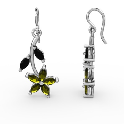 Peridot ve siyah zirkon 925 ayar gümüş küpe