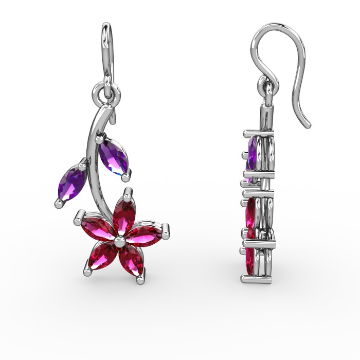 Rodolit garnet ve ametist 14 ayar beyaz altın küpe