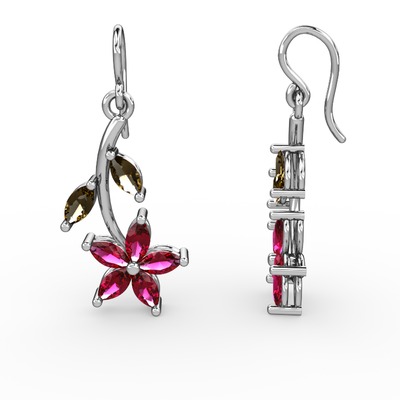 Rodolit garnet ve dumanlı kuvars 8 ayar beyaz altın küpe