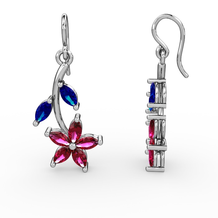 Rodolit garnet ve lab safir 8 ayar beyaz altın küpe