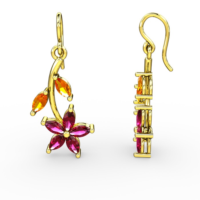 Rodolit garnet ve sitrin 925 ayar altın kaplama gümüş küpe