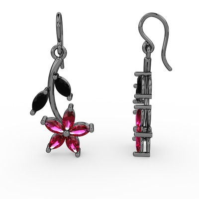 Rodolit garnet ve siyah zirkon 925 ayar siyah rodyum kaplama gümüş küpe