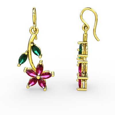 Rodolit garnet ve yeşil kuvars 925 ayar altın kaplama gümüş küpe