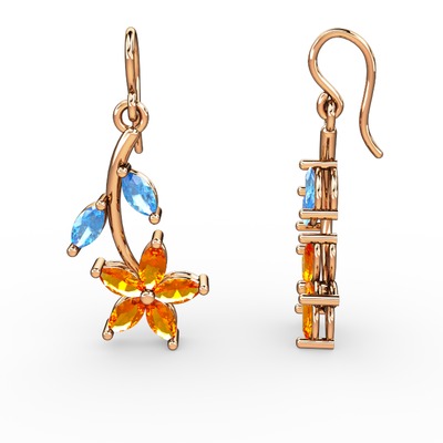 Sitrin ve akuamarin 14 ayar rose altın küpe