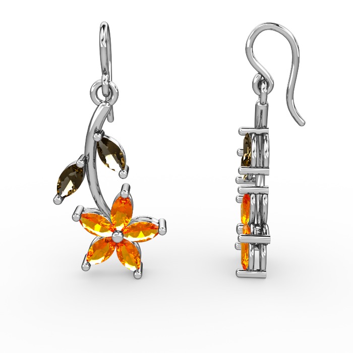 Sitrin ve dumanlı kuvars 18 ayar beyaz altın küpe