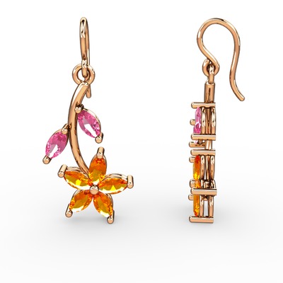 Sitrin ve pembe kuvars 14 ayar rose altın küpe