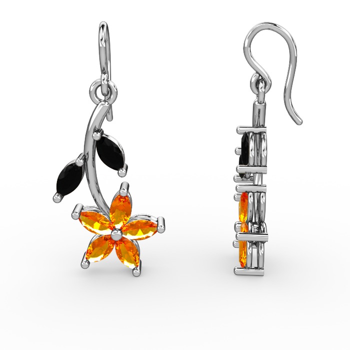 Sitrin ve siyah zirkon 14 ayar beyaz altın küpe