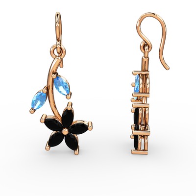 Siyah zirkon ve akuamarin 14 ayar rose altın küpe