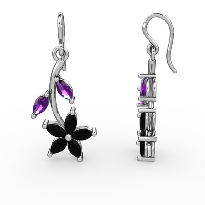 Siyah zirkon ve ametist 18 ayar beyaz altın küpe
