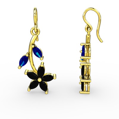 Siyah zirkon ve lab safir 14 ayar altın küpe