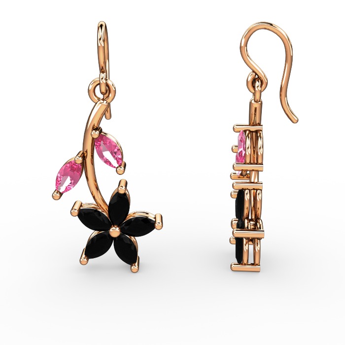 Siyah zirkon ve pembe kuvars 8 ayar rose altın küpe