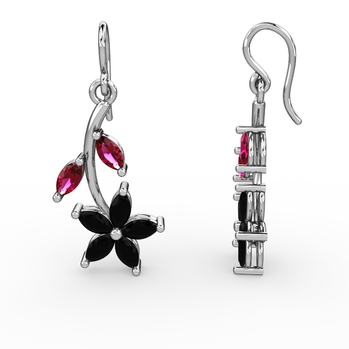 Siyah zirkon ve rodolit garnet 925 ayar gümüş küpe