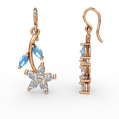 Swarovski ve akuamarin 925 ayar rose altın kaplama gümüş küpe