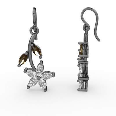 Swarovski ve dumanlı kuvars 925 ayar siyah rodyum kaplama gümüş küpe