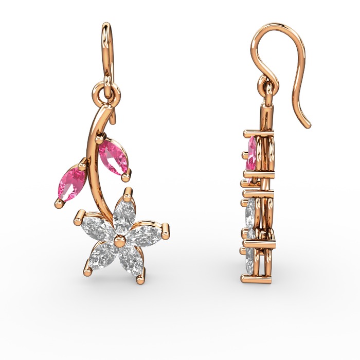 Swarovski ve pembe kuvars 14 ayar rose altın küpe