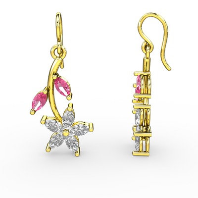 Swarovski ve pembe kuvars 8 ayar altın küpe