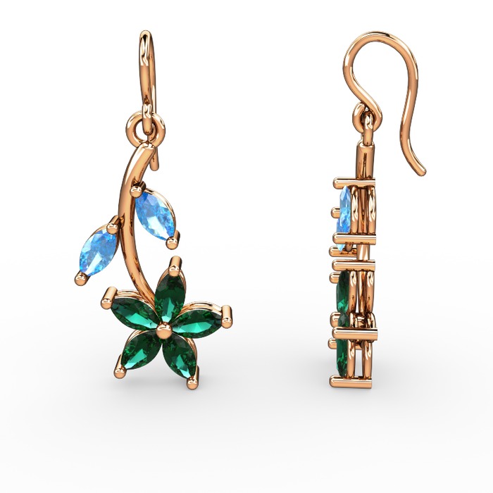 Yeşil kuvars ve akuamarin 925 ayar rose altın kaplama gümüş küpe