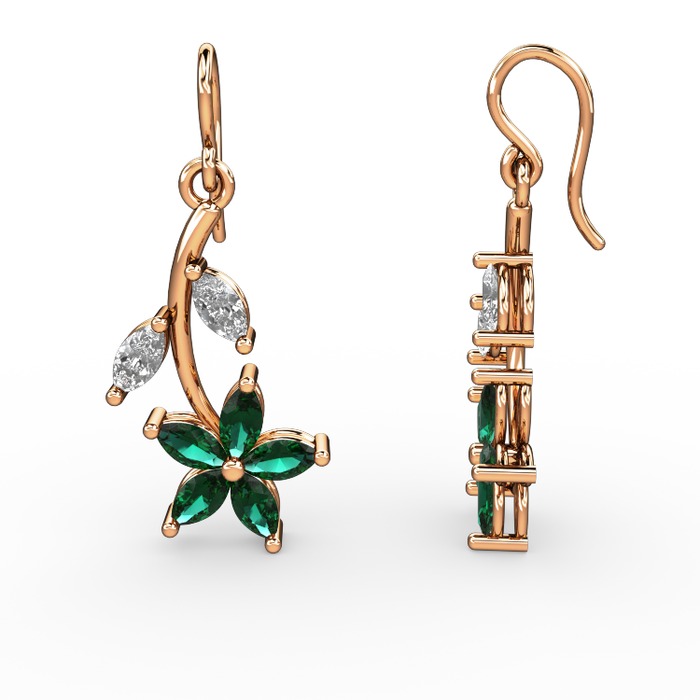 Yeşil kuvars ve beyaz zirkon 8 ayar rose altın küpe