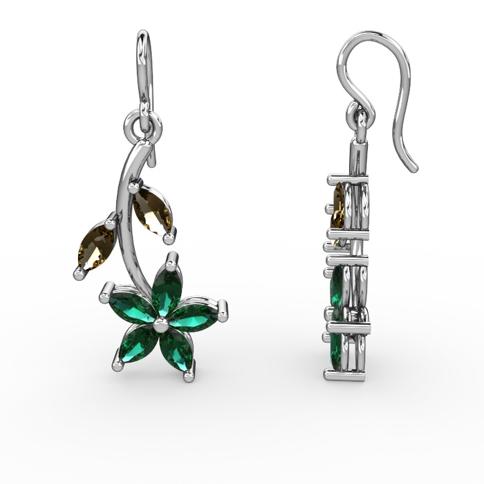 Yeşil kuvars ve dumanlı kuvars 925 ayar gümüş küpe