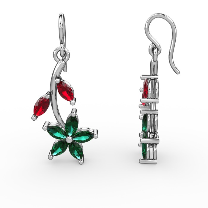 Yeşil kuvars ve garnet 18 ayar beyaz altın küpe