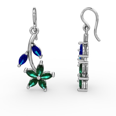 Yeşil kuvars ve lab safir 8 ayar beyaz altın küpe