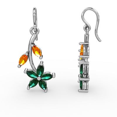 Yeşil kuvars ve sitrin 925 ayar gümüş küpe