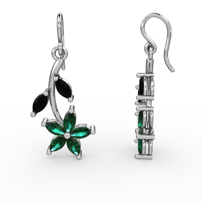 Yeşil kuvars ve siyah zirkon 18 ayar beyaz altın küpe