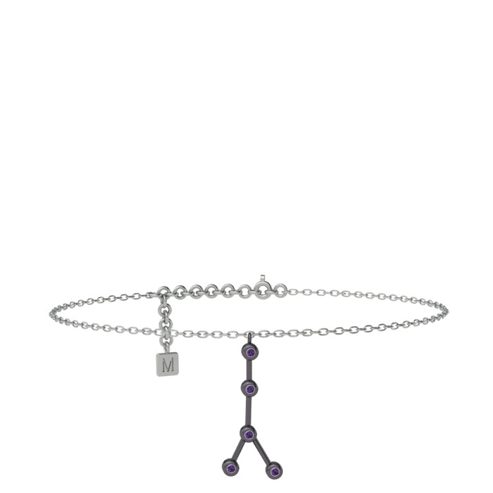 Ametist 925 ayar siyah rodyum kaplama gümüş bilezik (20 cm beyaz altın rolo zincir)