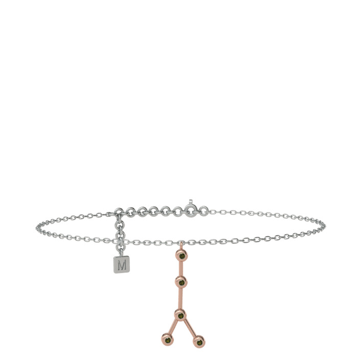 Peridot 18 ayar rose altın bilezik (20 cm beyaz altın rolo zincir)
